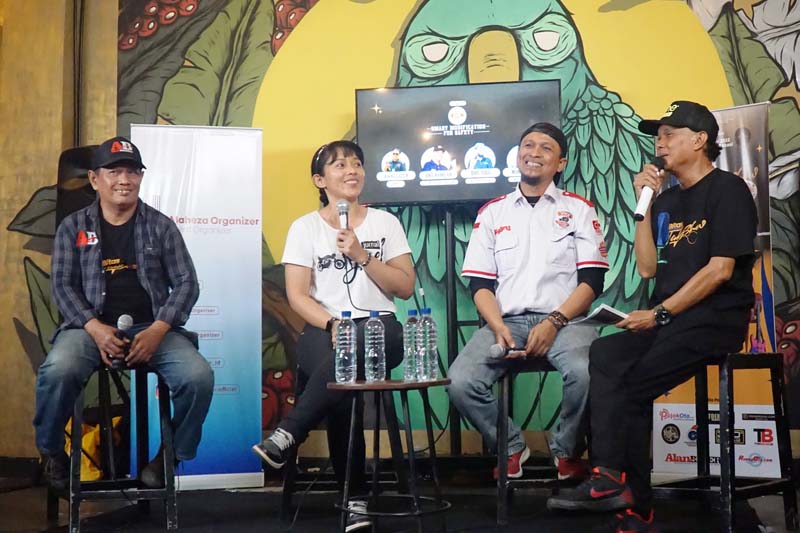 Mengambil lokasi di Archaic Coffeé, Sabtu (27/5), program BITAS kali ini suguhkan Talk Show “Rante Bikers” (Obrolan Santae Bareng Bikers) dengan tema “Smart Modification For Safety”. Hadirkan nara sumber Eleonora Ajisela Agrippina atau Non Jisel, Motocyclist yang juga penggiat Safety Riding lalu Yogie Baskoro Murty, Motorcycle Specialist Instructor dari KyFU (PT Karya Fajar Ultima), dan Ramlan ‘Alan Bikers’, Founder Alanbikers.com.