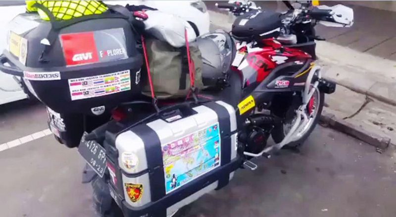 Selain motornya yang handal, Viar Vortex 250 dari PT. Triangle Motorindo ini juga dilengkapi dengan crash bar, jok yang empuk dan nyaman, peninggi stang, holder GPS Garmin, dan tentunya ban pilihan tourer, semua itu dimodifikasi dan disupport oleh Syndicate Motor Indonesia milik Bro Rial Hamzah.