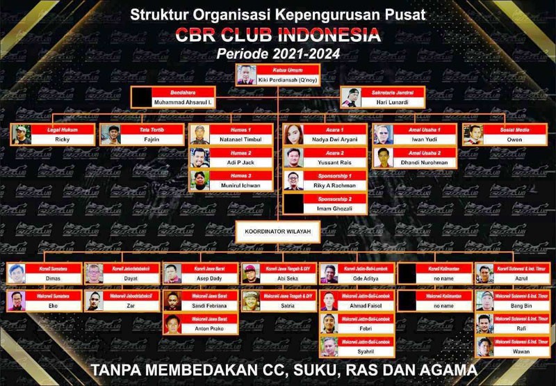 Sedangkan pemilihan ketua yang baru, ada 2 orang kandidiat yang mencalonkan diri sebagai ketua, yaitu Bro Kiki Perdiansah (Qnoy) dari CCI Banjar Patroman dan Bro Hari Lunardi dari CCI Mojokerto. Dari hasil voting yang dilakukan, Bro Qnoy terpilih menjadi Ketua CCI untuk periode 2021 – 2024. Sedangkan, Bro Hari Lunardi menjadi Sekjend.
