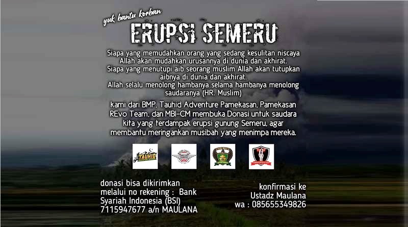 Adalah BMI Chapter Malang Raya, komunitas Bikers Muslim yang dekat dengan lokasi bencana itu langsung mengundang member dan masyarakat umum di Malang untuk ikut berdonasi bagi para korban bencana di Lumajang. Untuk itu, pengurus BM Malang Raya menghimbau bagi para donatur dapat menyalurkan donasinya melalui BM Malang di rekening BCA 0111281261 a.n Riza Adi Permana.