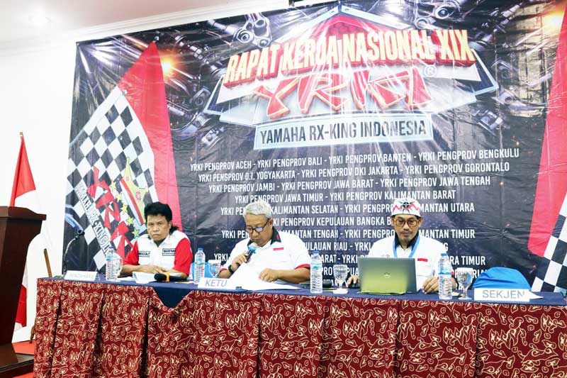 AlanBIKERS – Untuk kemajuan sebuah organisasi seperti klub/ komunitas tetap eksis, tentunya harus mempunyai program/ rencana kerja yang biasanya ditentukan dengan melaksanakan Rapat Kerja Nasional (Rakernas). Seperti yang dilakukan oleh Yamaha RX King Indonesia (YRKI) yang baru saja usai melaksanakan Rakernas XIX 2026 di Ball Room Hotel Puri Jaya, Jakarta Pusat, Sabtu (25/4).