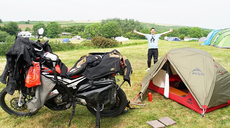 Akhirnya tibalah saya di Stonehenge yang fenomenal itu, berfoto dengan motor berlatar belakang Stonehenge memang keren, namun sayang hari itu dipadati wisatawan sehingga kurang menikmati area tersebut. Dan akhirnya kami memutuskan untuk camping di dekat pesisir laut selatan Inggris.