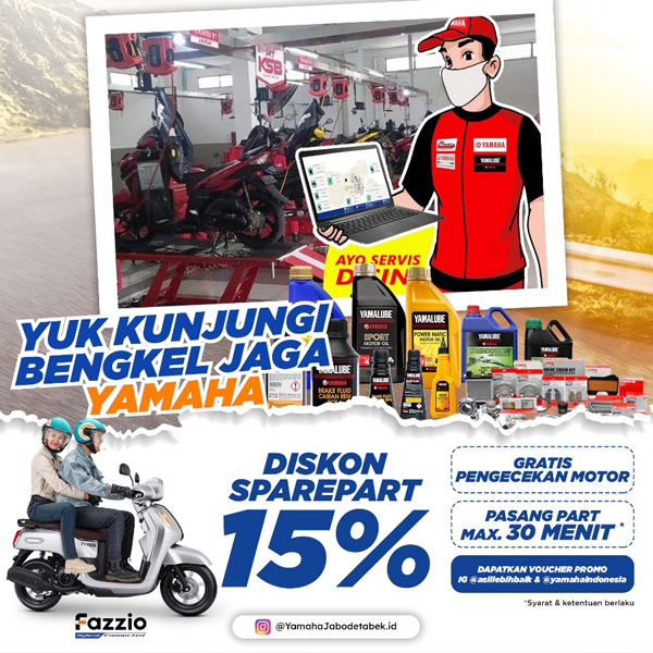Selain itu, Yamaha juga tengah mempersiapkan promo spesial untuk para konsumen yang melakukan service motor di Bengkel Jaga Yamaha, yakni gratis biaya pengecekan motor, voucher diskon 15% untuk pembelian spare part motor dan merchandise Yamaha berupa t-shirt untuk konsumen yang beruntung.