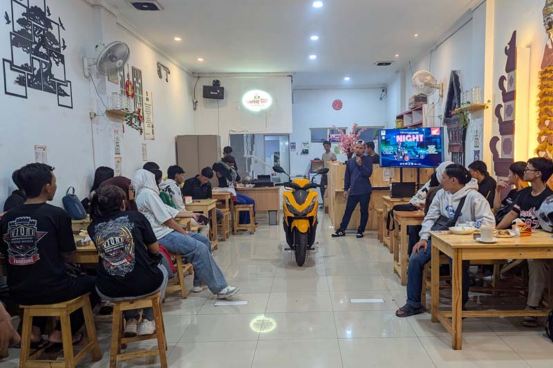 Suasana semakin hidup saat sesi sharing dan diskusi berlangsung interaktif, di mana para peserta aktif bertukar pengalaman seputar riding hingga modifikasi. Kebersamaan semakin terasa hangat saat momen makan bersama, menghadirkan nuansa akrab yang memperkuat koneksi antar anggota komunitas. Keseruan tersebut kemudian berlanjut ke agenda rolling city, dengan tetap mengedepankan disiplin berlalu lintas #Cari_Aman.