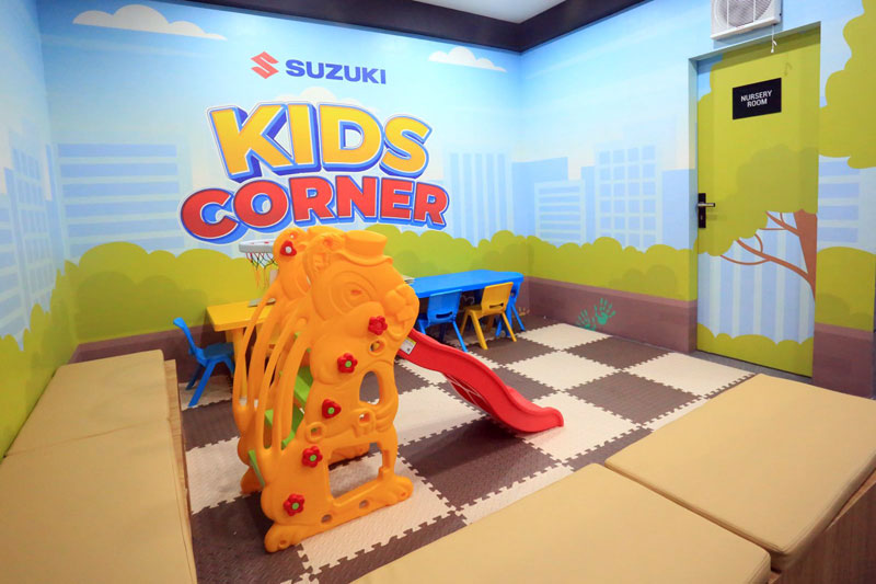 Memahami pentingnya kenyamanan keluarga, Suzuki menyediakan Kids Corner dan Nursery Room yang ramah. Fasilitas ini dapat dimanfaatkan sehingga pelanggan dapat menikmati area booth dengan nyaman dan lebih leluasa.