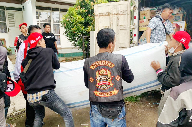Dalam menyalurkan bantuan tersebut, turut dibantu para bikers perwakilan dari Ikatan Motor Honda Jawa Barat (IMHJB) yang dipimpin langsung oleh Ketua IMHJB Bro Goy. Penyerahannya secara simbolik langsung di Gedung Wanita Rancage. Diserahkan kepada Kepala Dinas Penanaman Modal Pelayanan Terpadu Satu Pintu Kabupaten Cianjur dan Kepala Bidang Dinas Sosial Kabupaten Cianjur.