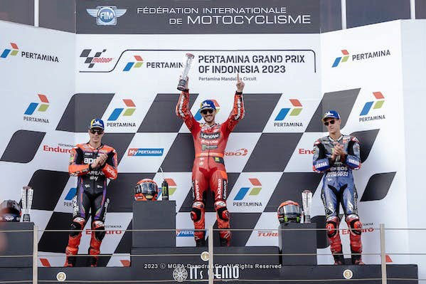 AlanBIKERS.com – Puncak pelaksanaan Pertamina Grand Prix of Indonesia (Indonesian GP) 2023 di Pertamina Mandalika International Circuit, Lombok Tengah, Nusa Tenggara Barat (NTB) diwarnai dengan sejumlah kejutan mulai dari race MotoGP, Moto2, dan Moto3 pada hari ketiga, Minggu (15/10).