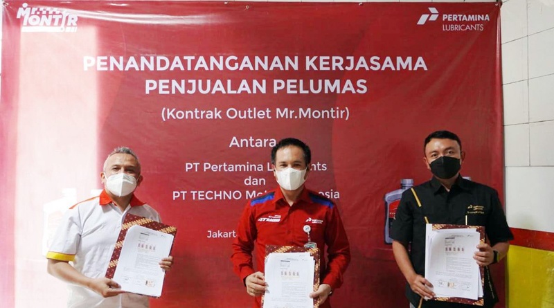 Penandatanganan Kontrak Outlet antara anak perusahaan PT Pertamina (Persero) yang mengelola usaha pelumas otomotif dan industri domestik dan internasional ini dengan PT Techno Motor Indonesia (Mr. Montir Outlet) dilakukan hari Selasa (6/4) di di outlet Mr. Montir Pondok Gede, Jakarta Timur.