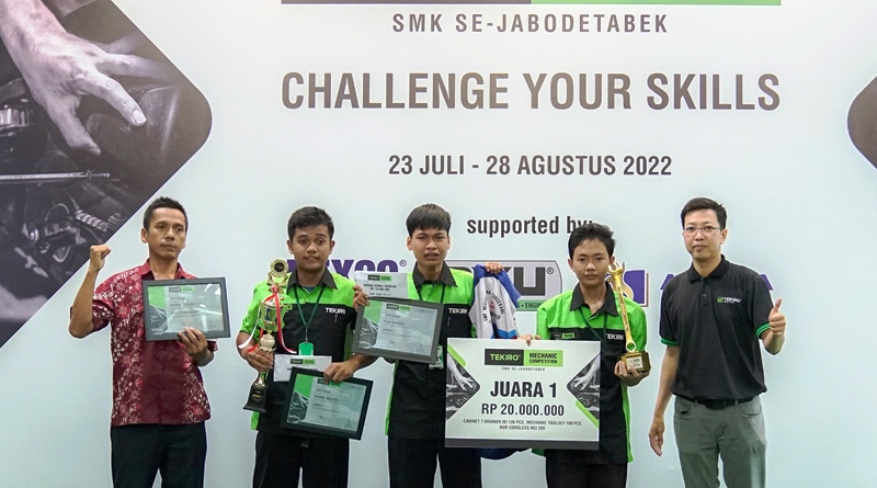 AlanBIKERS.com – Tim SMKN 8 Kabupaten Tangerang berhasil keluar sebagai juara dalam ajang Tekiro Mechanic Competition 2022. Tim yang terdiri dari Surya Chandra, Rahmat Mulyadi dan Puja Saputra ini berhasil menyisihkan 9 team lainnya di babak final.