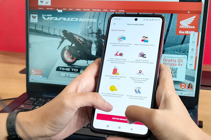 Pendaftaran dapat dilakukan melalui aplikasi WANDA, aplikasi layanan konsumen sepeda motor Honda milik WMS yang memudahkan akses pendaftaran program serta berbagai informasi seputar layanan Honda dalam satu platform.