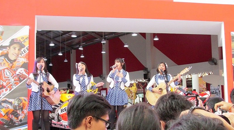 AlanBIKERS.com – Girlband JKT48 juga kampanyekan slogan Cari_Aman saat menghibur pengunjung Jakarta Fair di booth Honda, Sabtu lalu (9/6). Dihadiri ratusan penggemarnya yang berbaur dengan pengunjung lain, personel JKT 48 ajak interaksi penonton terkait berkendara aman diselingi beberapa lagu hits mereka.