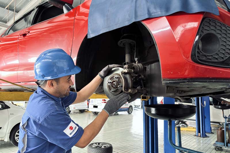 “Keselamatan keluarga saat mudik sangat bergantung pada kondisi kendaraan, salah satunya adalah performa rem yang optimal, terutama ketika mobil membawa beban penuh. Oleh karena itu, kami mengimbau pengendara untuk melakukan pengecekan menyeluruh melalui langkah-langkah berikut ini agar pengereman tetap responsif di berbagai kondisi jalan,” ujar Hariadi, Asst. to Aftersales Department Head of Service PT Suzuki Indomobil Sales (SIS).